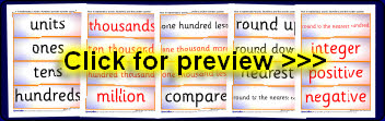 A set of printable cards featuring the mathematical vocabulary for ‘Numbers and the number system’ to be used in Year 4.