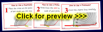 A set of posters and a tabletop sheet with reminders on how to use a protractor to measure angles.