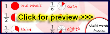 A set of simple cards for matching the written representation of fractions to pictorial representation. Up to 8ths.