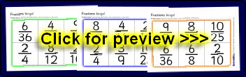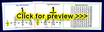 A set of simple posters showing some basic equivalent fractions. Also includes a fractions grid.