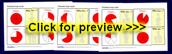 Fractions loop cards (1/2s, 1/3s, 1/4s, 1/5s, 1/10s)
