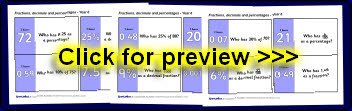 A set of loop cards with questions and answers related to converting fractions, decimals and percentages. Aimed at Year 6. 30 different cards included.