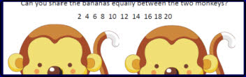 A fractions game/teaching tool. Cut out the bananas and share them equally between the monkeys.