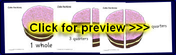 Printable pupil fraction fans using cakes. Includes whole, halves and quarters.
