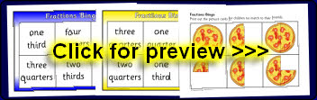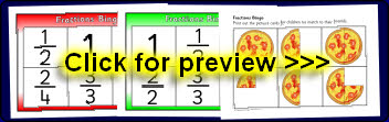 A simple fractions game where children match the pizza picture cards to the numerical fractions on their board.