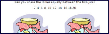 A fractions game/teaching tool. Cut out the sweets and share them equally between the jars.
