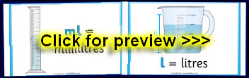 Simple posters to show the abbreviations for metric volume/capacity measurement units.