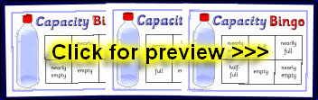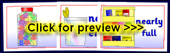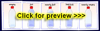 Printable bingo boards and picture cards for ‘full’, ‘nearly full’, ‘half-full’, ‘nearly empty’ and ‘empty’.