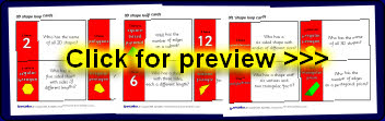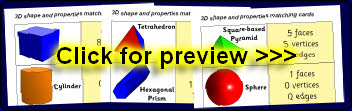 A set of printable cards with 2D and 3D shapes and corresponding properties for matching games or discussion.