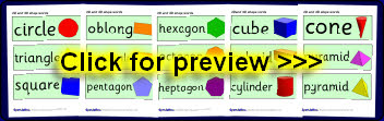 A PDF document with the common mathematical shape names (2D and 3D) together with accompanying pictures.