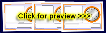 An editable set of posters (Microsoft Word required) with space to add pictures of daily activities alongside analogue clocks as well as your own text. A useful accompaniment to our Half past daily routine time posters.