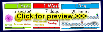 A poster set showing units of time and how they are divided up from 1 year down to seconds.