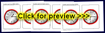 A set of 13 printable loop cards featuring analogue quarter past times.