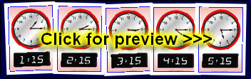 A set of A4-sized printable posters showing analogue and digital quarter past times.