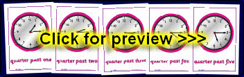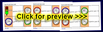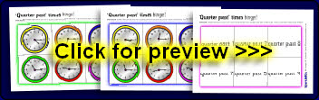 A printable bingo set which includes clock boards as well as ‘quarter past’ time boards. Laminate the boards for extra durability. A simple but fun activity where children match the ‘quarter past’ times to the clocks on their board, or vice versa. Ideal for helping children understand analogue clocks.
