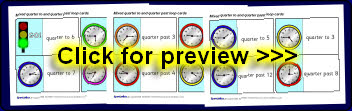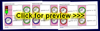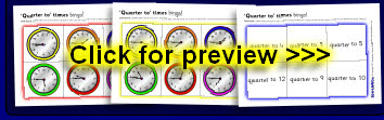 A printable bingo set which includes clock boards as well as ‘quarter to’ time boards. Laminate the boards for extra durability. A simple but fun activity where children match the ‘quarter to’ times to the clocks on their board, or vice versa. Ideal for helping children understand analogue clocks.
