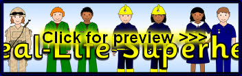 A colourful banner for a classroom topic display about ‘Real-life superheroes’.