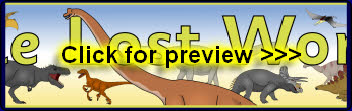 A colourful dinosaurs banner with the text ‘’The Lost World’.