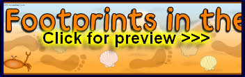 A colour banner with a beach theme and the title, ‘Footprints in the Sand’.