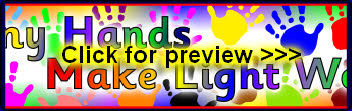 A colourful banner with the words ‘Many Hands Make Light Work!’.