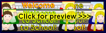 A set of colourful ‘Welcome to School’ banners with children in a variety of uniform colours.