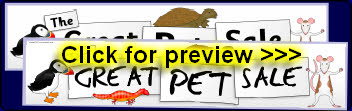 Colour printable banners to accompany the story of ‘The Great Pet Sale’ by Mick Inkpen.