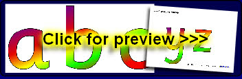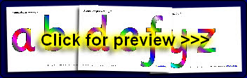 A PDF document with the 26 multicoloured capital letters. These are great for printing out as display lettering, or for classroom alphabet lines.