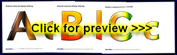 A PDF document with 26 alphabet letters (upper and lowercase) in typical Autumn colours. These are great for printing and cutting out for use on displays.