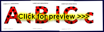 A PDF document with 26 alphabet letters (upper and lowercase) with a ladybird pattern. These are great for printing and cutting out for use on displays.