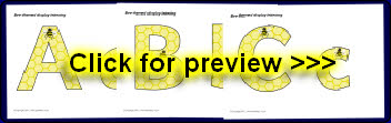 A PDF document with 26 alphabet letters (upper and lowercase) with a bee and honeycomb theme. These are great for printing and cutting out for use on displays.