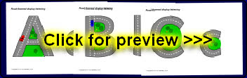 A PDF document with 26 alphabet letters (upper and lowercase) with a road and cars theme. These are great for printing and cutting out for use on displays.