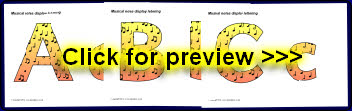A PDF document with 26 alphabet letters (upper and lowercase) with a musical notes pattern. These are great for printing and cutting out for use on displays.