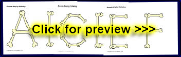 A PDF document with 26 alphabet letters (uppercase) made from bones. These are great for printing and cutting out for use on displays.