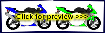 Microsoft Word templates that enable you to add text to coloured motorbikes.