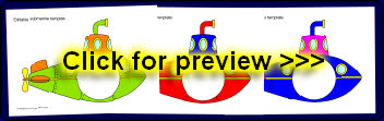 Microsoft Word templates that enable you to add your own text to different coloured submarines.