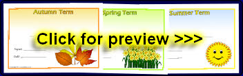 Editable certificates to present to pupils at the end of each term. Includes certificates for Autumn, Spring and Summer terms with space to enter your own titles and text.