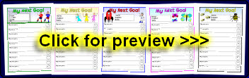 A set of themed editable target sheets with the text ‘My next goal is...’. Each sheet has space for 10 different targets. Microsoft Word is required to add your own text.