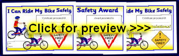 Certificates to present to children who can demonstrate good bicycle safety awareness.