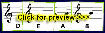 A set of printable flash cards with treble clef notes on the stave. Includes labelled and non-labelled versions.