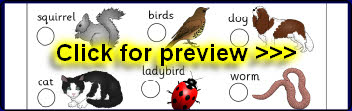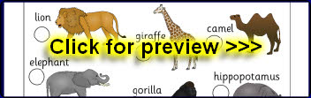 A form for children to tick off various animals they might see when on a school trip to the zoo.