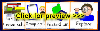A colourful set of 17 JPG images featuring activities when going on a school trip. Images can easily be resized to suit your needs. The download also includes a PDF document with the timetable images pre-arranged 6 to a page (A4).