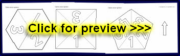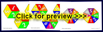 Printable pencil spinners for use in tabletop games. Includes spinners with numbers ranging from 1-3 to 1-10.