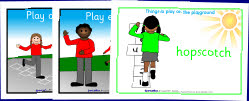 A set of 14 flash cards with various physical actions including running, skipping, tip-toeing, types of jumps, rolls and more.