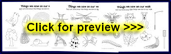 Sheets featuring pictures of things that children might see on a walk around the local environment. Pupils cut out and colour the things they saw on their walk.