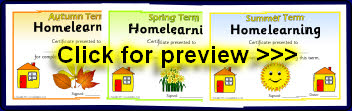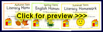A set of certificates to present to pupils each term for completing their Literacy/English homework.