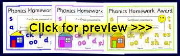 A set of certificates to present to pupils each term for achievement with their phonics homework.