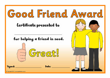 Good Friend Award certificates
