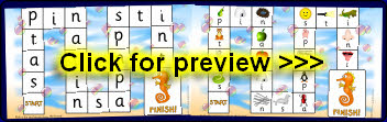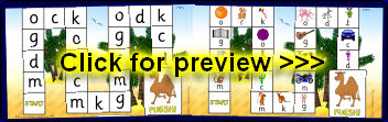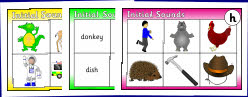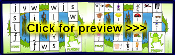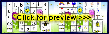 Simple printable board games where children roll a die to move across the board. Children say the sound they land on. If they can’t, they move back.