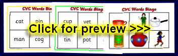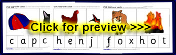 Printable word wheels making CVC words. Children first make the word to match the picture, then construct other CVC words by changing the initial consonant.