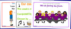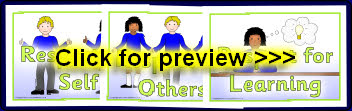 Four simple posters reminding children to show respect to themselves, others, learning and things around them.